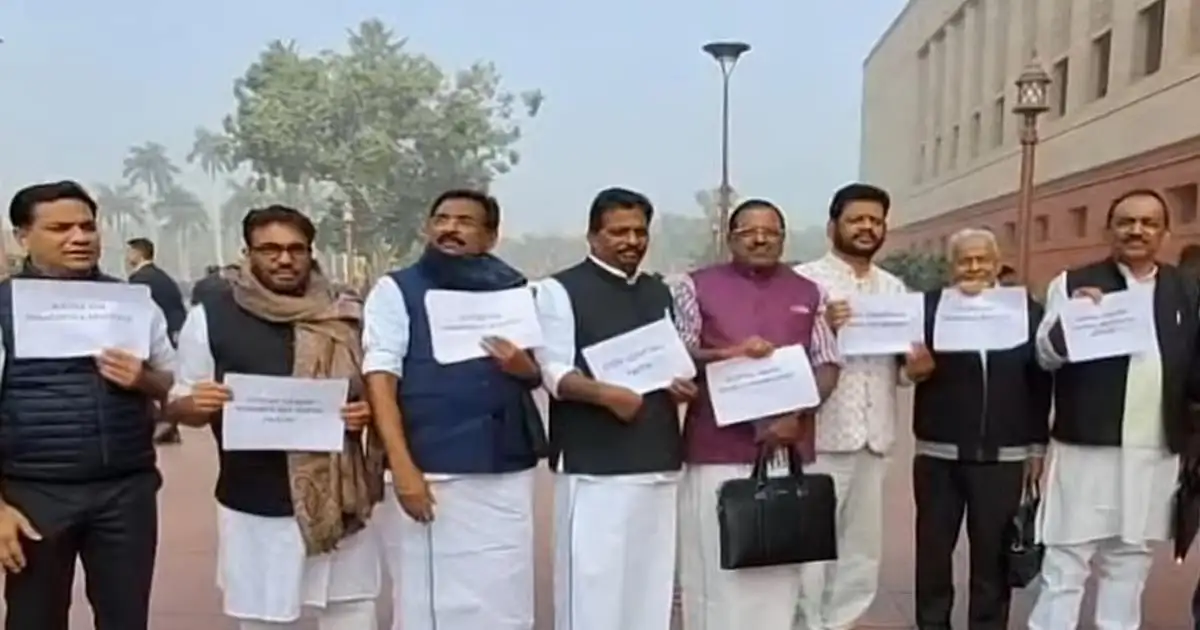 ശബരിമല സ്വർണക്കൊള്ള: പാർലമെന്റിന് മുന്നിൽ പ്രതിഷേധവുമായി യുഡിഎഫ് എംപിമാർ