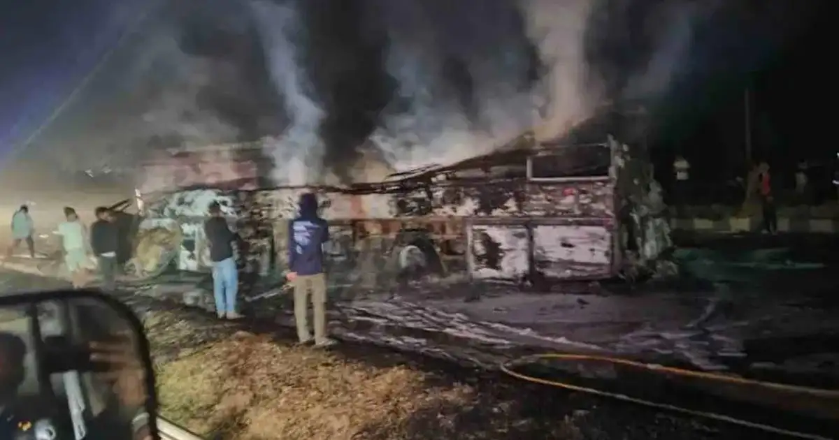 കർണാടകയിൽ കണ്ടെയ്‌നർ ലോറിയും സ്ലീപ്പർ ബസും കൂട്ടിയിടിച്ച് തീപിടിച്ചു; ഒമ്പത് പേർ മരിച്ചു